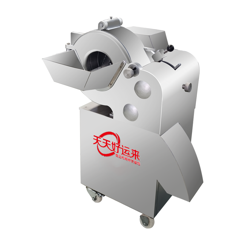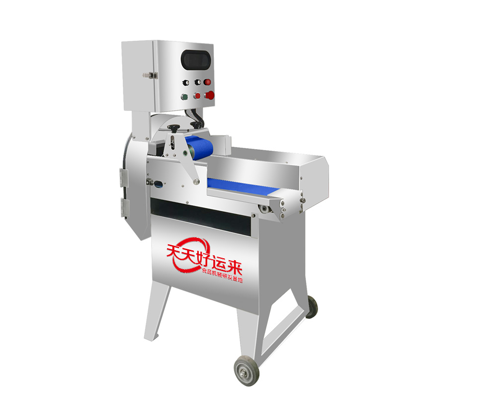 本設備幾乎可切任何瓜果蔬菜,如:切片、絲、丁,末、段等;具備雙調頻功能,一頭是切葉菜類,如長蔥,蒜苗,韭菜,芹菜,白菜,青菜等等,一頭是切球根莖類,如蘿卜,土豆,紅薯,芋頭,筍,洋蔥,茄子,蘋果,生姜等等眾多瓜果類蔬菜。葉菜類的輸送帶速度和轉刀速度采用PLC數控屏操作,均可獨立控制,葉菜切割規格:1~50mm可調。切部份根莖類;根徑部份刀盤范圍:片:2-10MM,絲:2-6MM,丁:8MM、10MM、12MM、15MM、20MM選一;一機多用,功能強大,產量高,操作簡單,皮帶可快速拆卸,并可水槍沖洗,清洗方便。